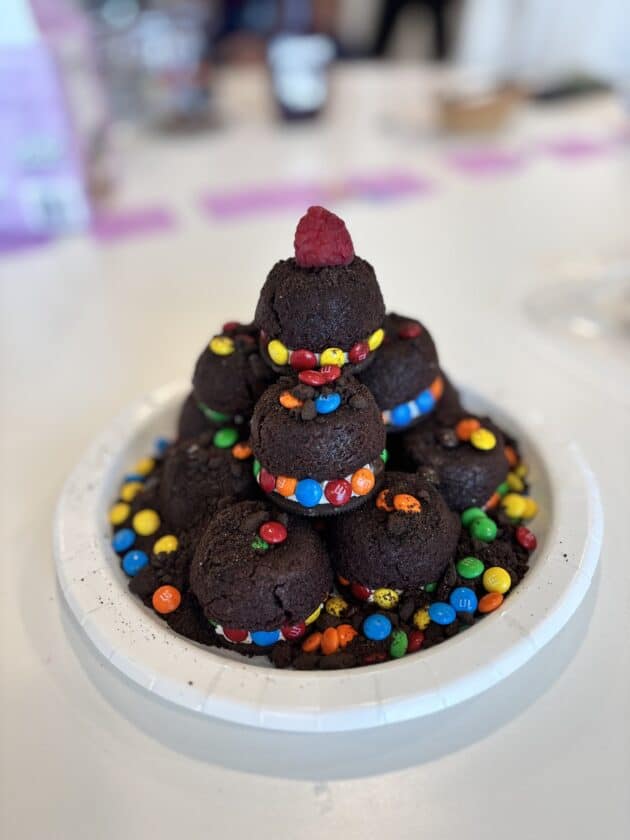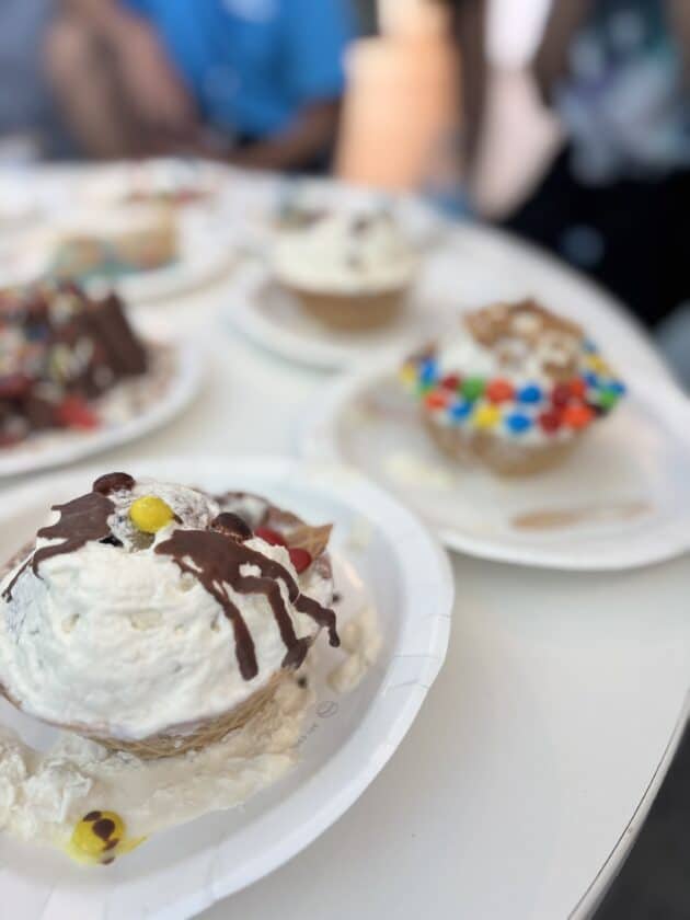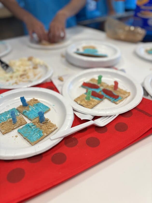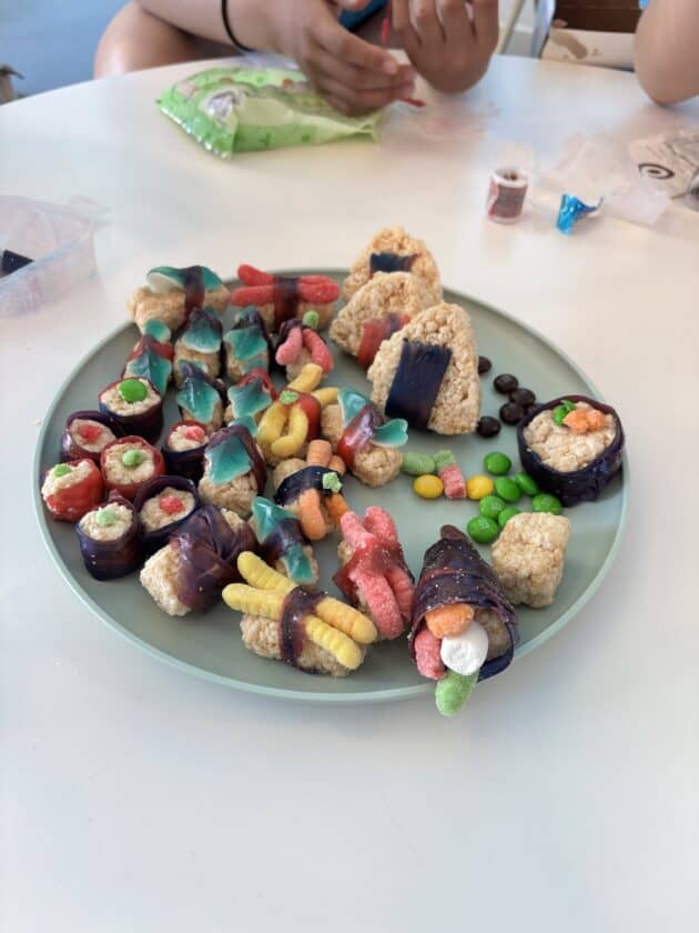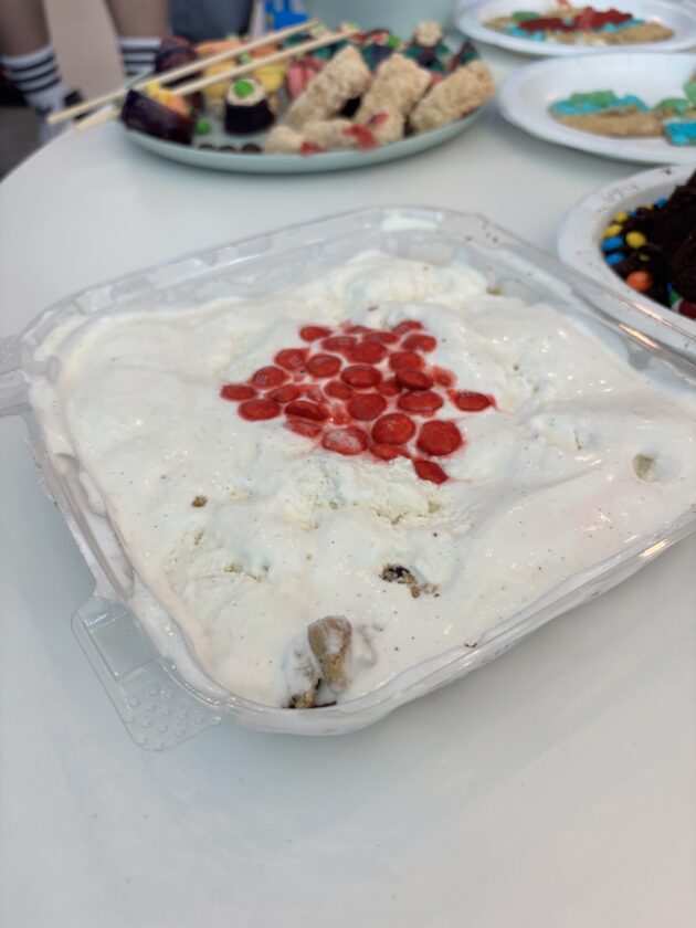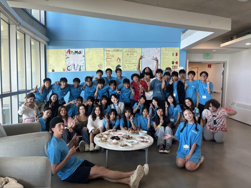 みんなでスィーツ作り~♪ 火を使わずに、キャンパス内にあるスーパー「ターゲット」で材料を買って来て、それをアレンジしたりデコレーションしたり…予算は1チーム$20。キャンプリーダーのジェイデンやスタッフのユーリとアシュリーの3人が審査します。見た目、味、個性などを総合審査しました!